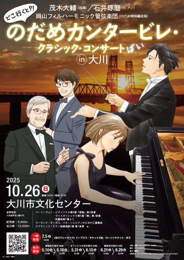 のだめの故郷・大川市で聴く「悲愴」「春」「ラフマニノフ2番」など名曲の数々。作品の音楽監修者・茂木大輔氏による本格演奏をお楽しみください。