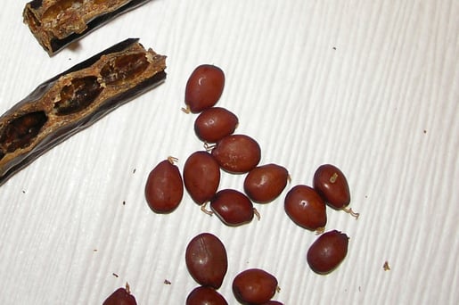 上の写真は「カラット」、日本語では「イナゴマメ」って呼ばれてる甘いお豆さんなんだ。