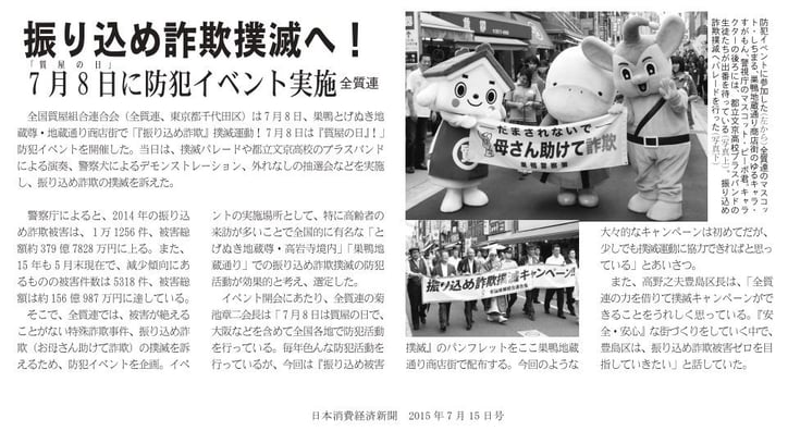 質屋さんは日ごろから警察の皆さんと連携しながら、防犯活動に協力しているんだけど、 今回ボクも参加した振り込め詐欺撲滅キャンペーンで、少しでも被害が減ることを祈ってます!