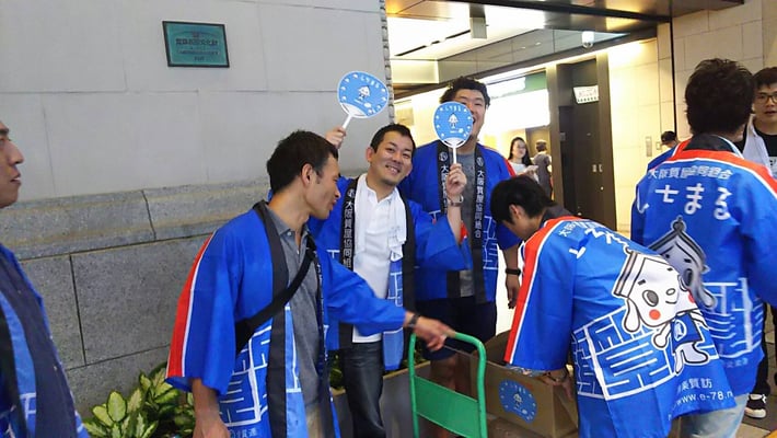 全質連のPR検討会のみんなも、おそろいのかっこいいハッピでお出迎え♪